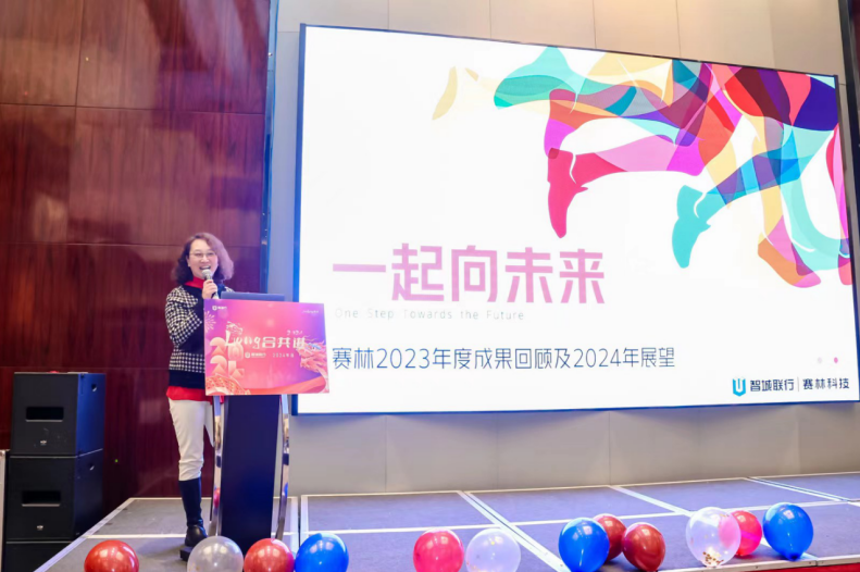 在大会的结束部分,赛林科技公司总经理江玲以“一起向未来”为主题进行了分享总结。目前的市场形势挑战与机遇并存,未来的路还有许多的不确定性,江总在业务市场、产品服务、合作联盟方面对大家提出了展望。未来,智城联行将不断探索,挑战自我,致力于打造更具创新力、更有社会责任感的企业形象。我们深知,只有与时俱进、不断创新,才能真正实现可持续的发展。让我们一起秉持着激情和信念,将挑战转化为机遇,携手并肩,一起向未来迈进。