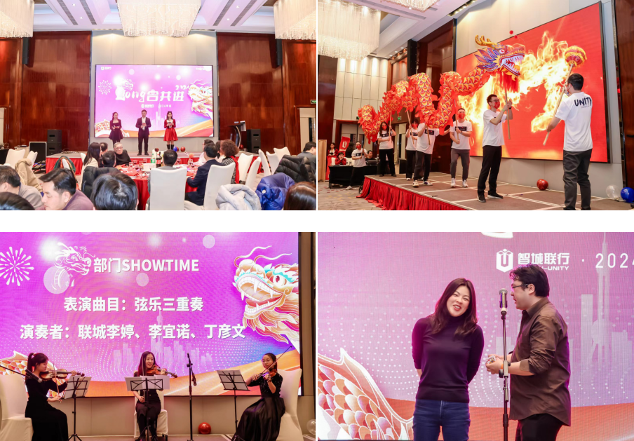 当晚18:50,“Long合共进”——智城联行2024年会晚宴环节正式开始。大家别旧岁、迎新篇,两家公司节目精彩纷呈、让人目不暇接。让我们一起看看想这些精彩瞬间吧!