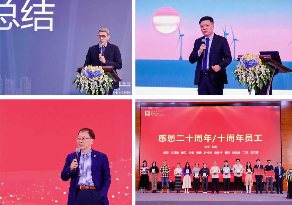 年会下午,首先由主持人朱总分享了个人对2024年“双碳”咨询实践的总结与感触,以小见大,印证了“城市”工作的引领性意义。随后,詹博从业绩达成、成果展示和组织管理三个维度回顾了2024年公司各项工作情况,并以“站位”为主题,强调了站位对于个人、公司,乃至城市和国家的重要性,鼓励“城市”人主动选择站位,不断调适站位,与“城市”一起立足上海,站高望远,谋求更前沿的未来。接下来,在总经理室为过去一年的优秀员工/团队,以及10周年、20周年员工颁奖后,袁老师对各位志同道合、风雨同舟的伙伴表达了衷心的感谢,也肯定了全体员工在过去一年的贡献,相信在长久积累的城中村改造、产业绩效评价、乡村振兴等业务基础上,“城市”将以充足的底气和韧劲迈出2025的崭新步伐。最后,朱总再次强调了要坚持综合一体化这一发展主线,把综合一体化做得更优秀、更精准、更超前。
