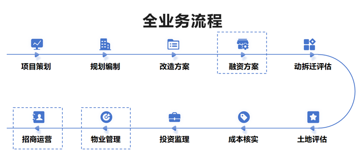 在项目实操层面,我们提供从策划到实施的全流程、一站式解决方案。从项目前期的策划研究、城市设计与规划调整、城中村改造实施方案概要和实施方案编制,到关键的资金平衡测算,再到实施阶段的动拆迁评估、土地价格评估、成本核实、投资监理等,我们秉持专业的态度确保每一个项目既仰望星空,又脚踏实地。